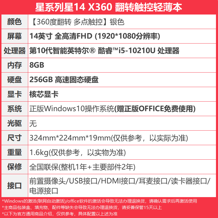 惠普(HP)|笔记本电脑,-【爆款】惠普HP【星14-X360】笔记本电脑14 FHD 翻转触控/i5-10210U/8G/256G SSD/核显/银色