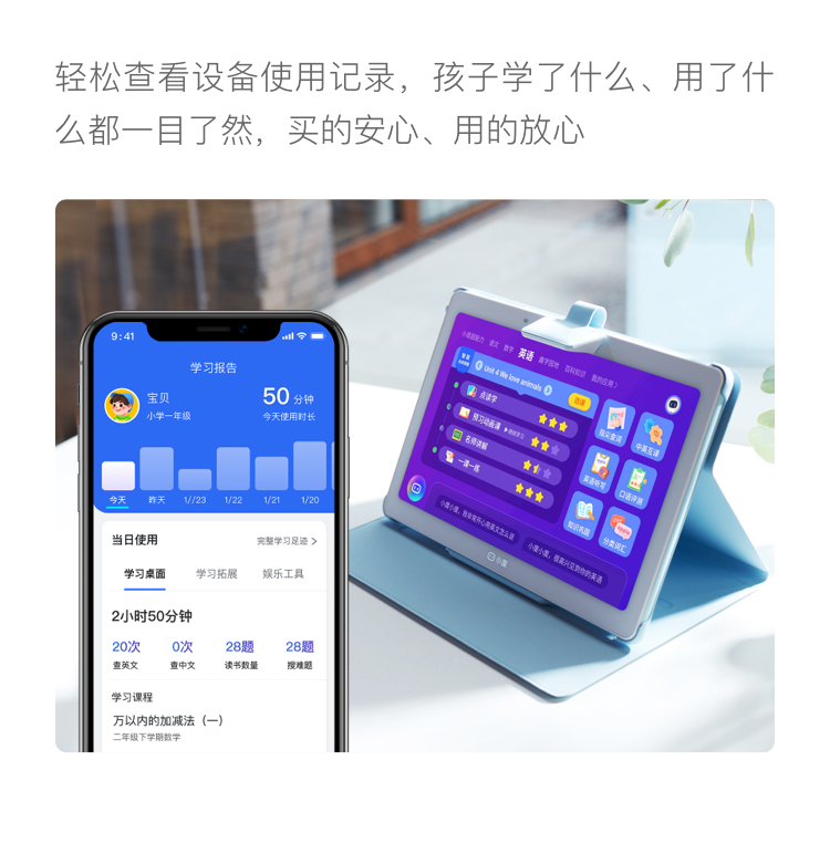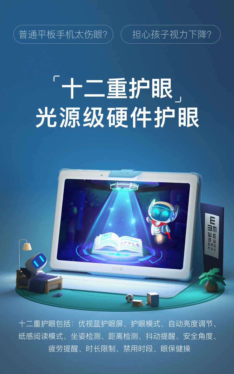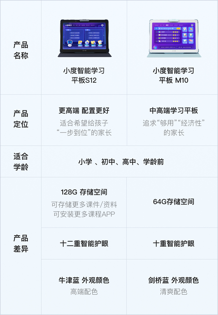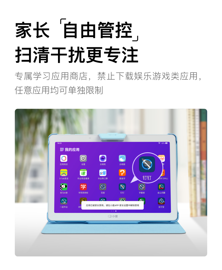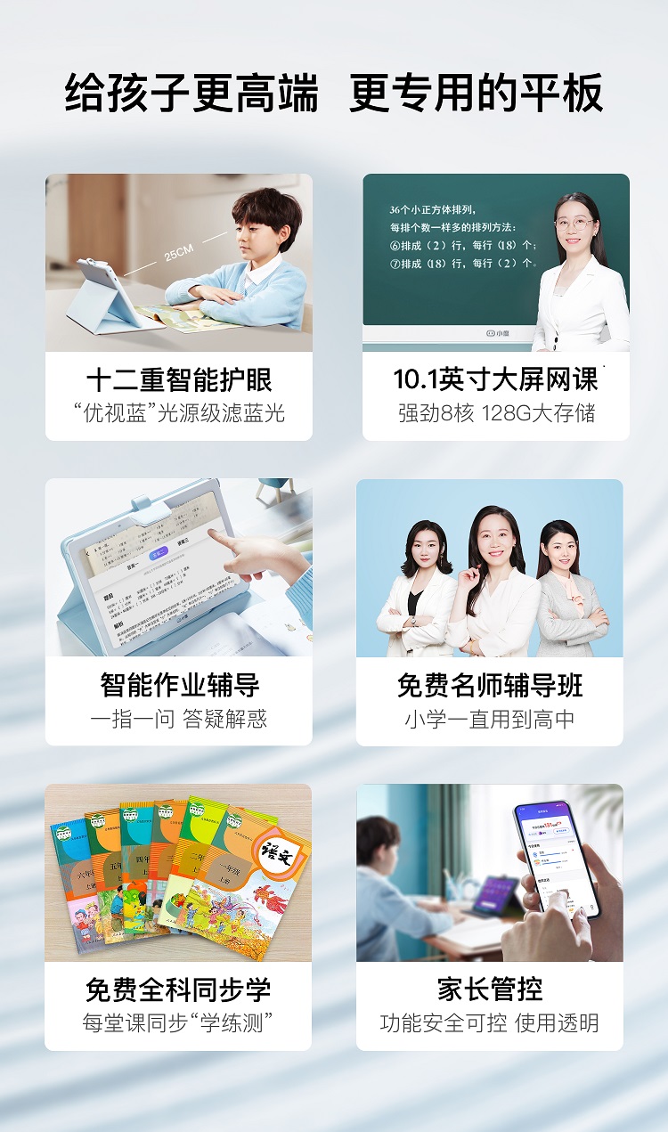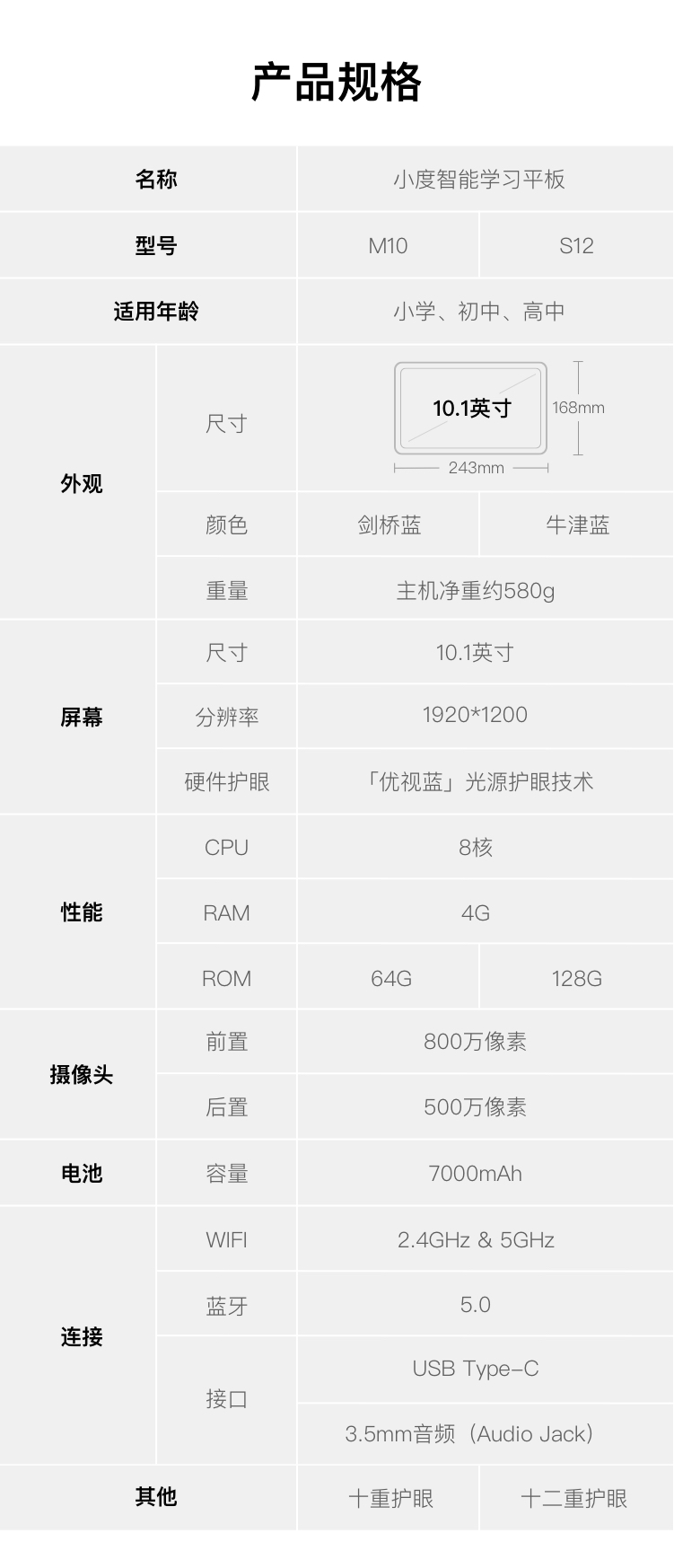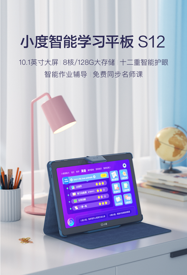 小度(Xiao Du)|平板电脑,-小度智能学习平板S12(4GB+128GB)家教机 点读机 早教机 小学初中高中同步学习机 XDH-25-B3
