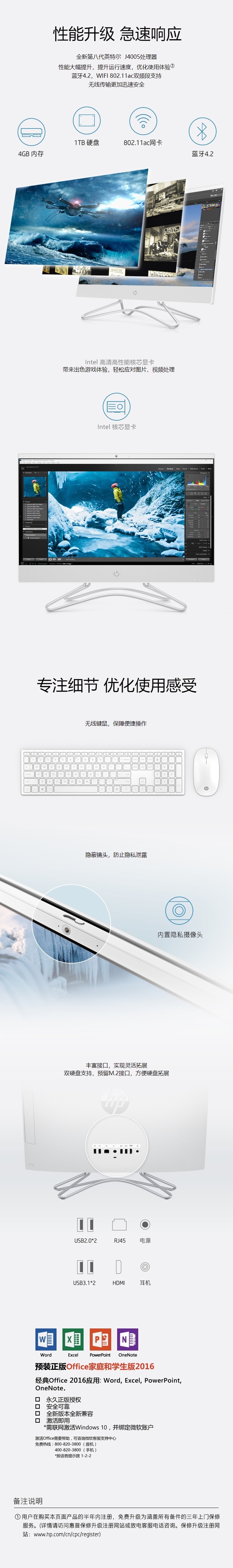 惠普(HP)|台式电脑,-惠普(HP) 23.8英寸 大屏1080P全高清一体机(23.8" FHD,Intel J4005,4G/1T,核显,W10,无线键鼠)