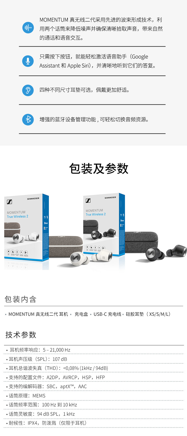 森海塞尔(SENNHEISER)|耳机,-SENNHEISER/森海塞尔 MOMENTUM真无线二代