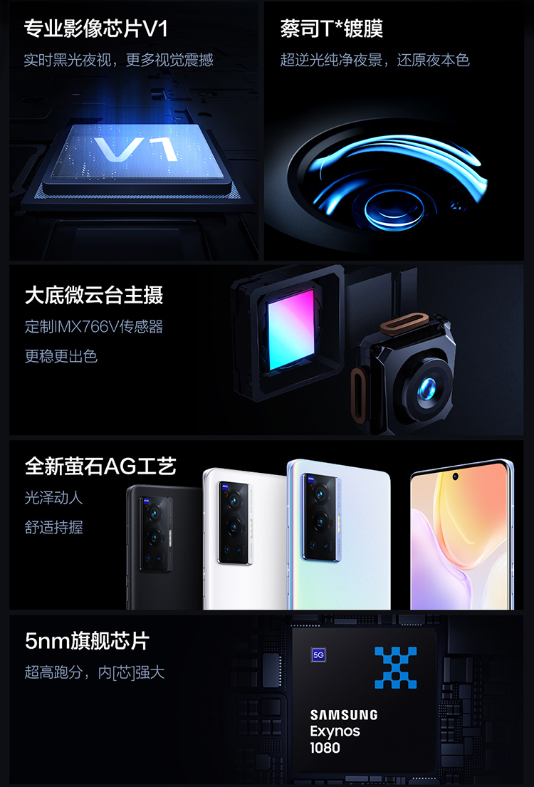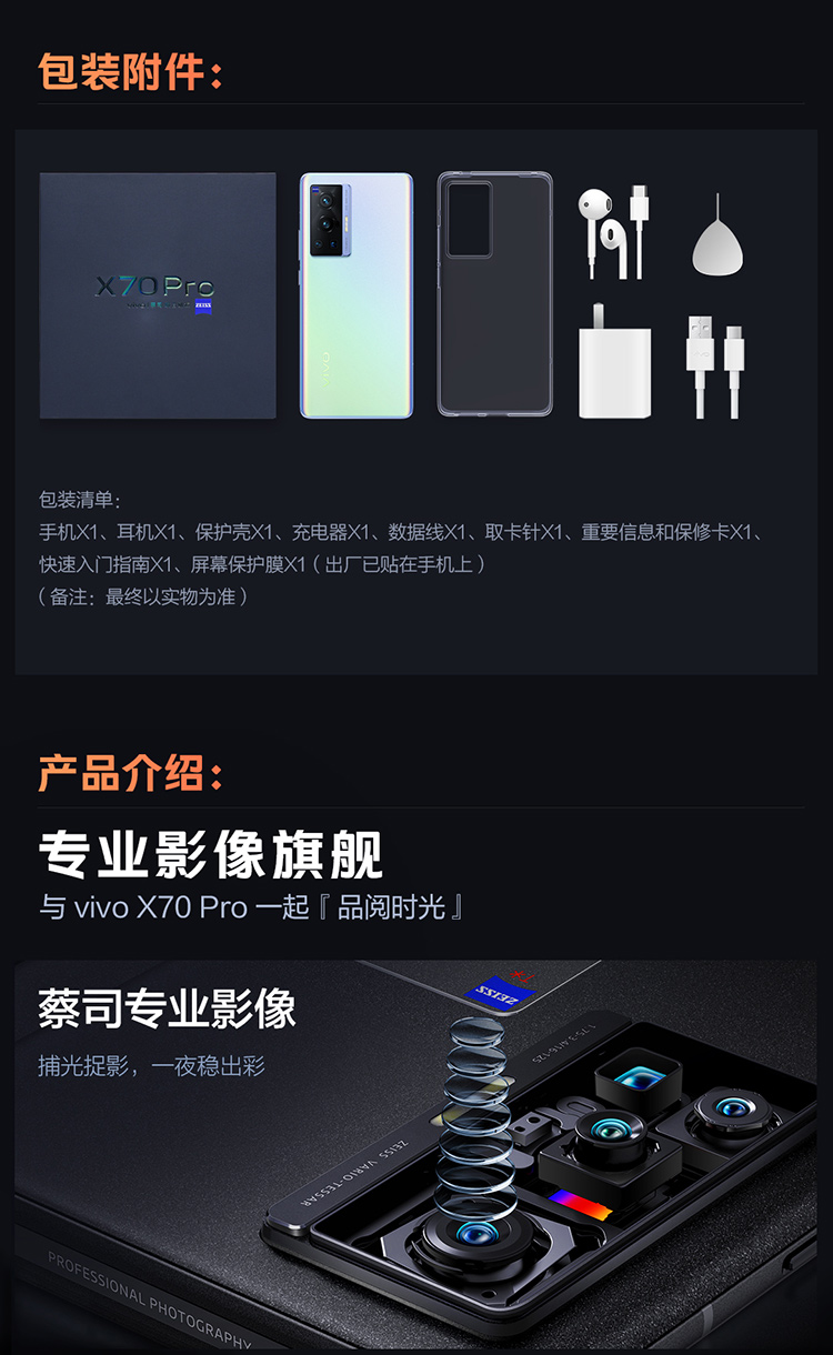 vivo|手机,-vivo X70 Pro 12GB+256GB 5G手机 蔡司光学镜头 大底微云台主摄 专业影像芯片V1 高跑分旗舰芯片V2134A