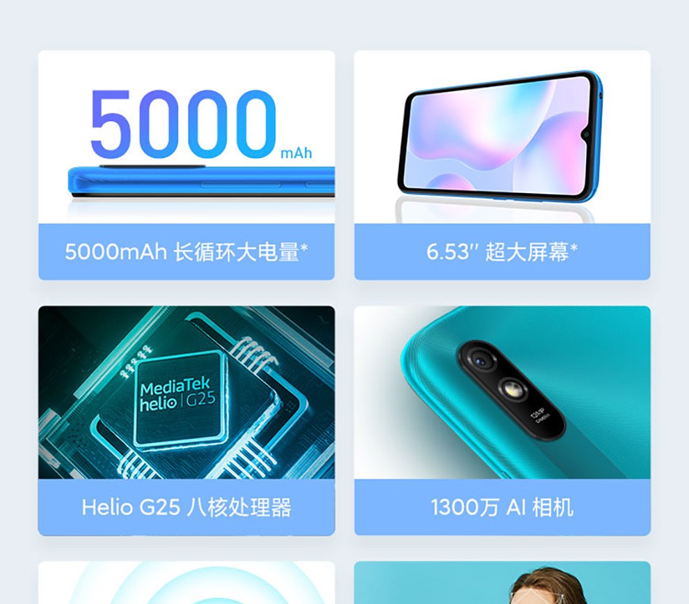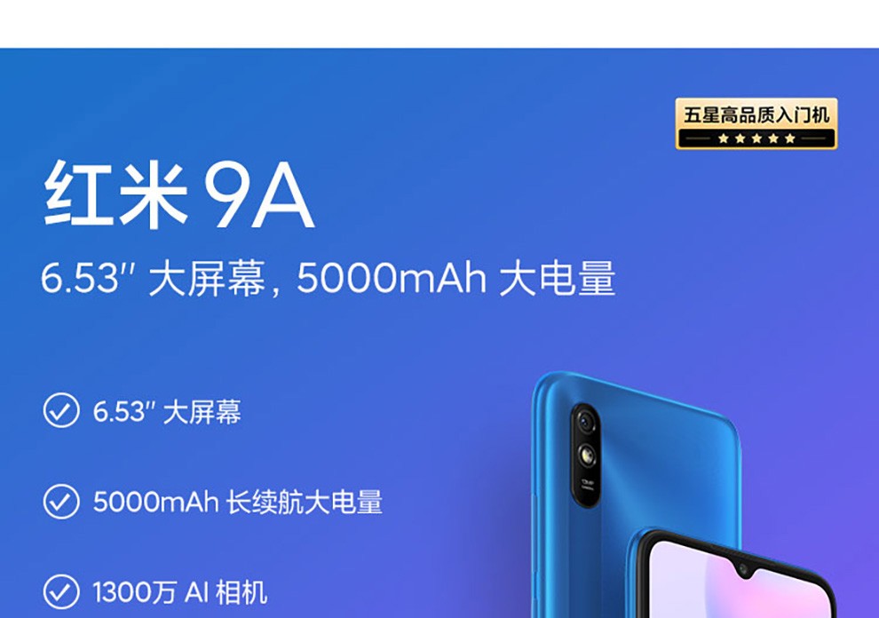 小米|手机,- 小米红米Redmi 9A 5000mAh大电量 1300万AI相机 八核处理器 人脸解锁 4GB+64GB 游戏智能手机 M2006C3LC