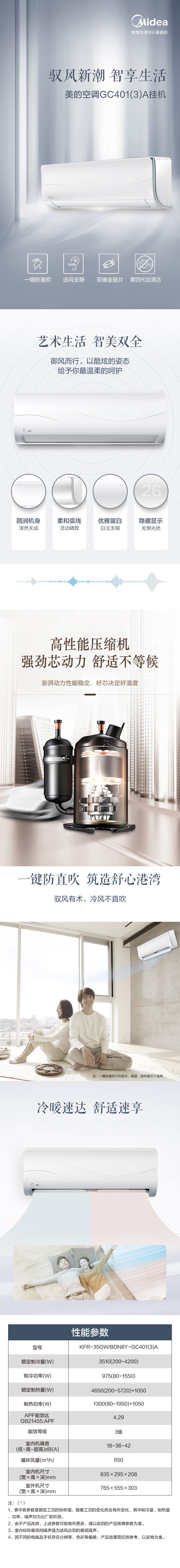 美的(Midea)|空调,-美的(Midea) 空调 1.5匹变频空调 KFR-35GW/BDN8Y-GC401(3)A(原价购买)