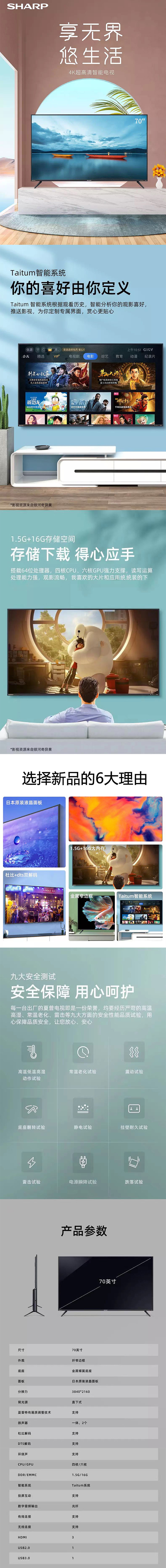 夏普(SHARP)|电视机,-[冬至大直播]夏普(SHARP) 70英寸4K高清日本原装进口液晶屏智能电视机70A3UZ(4T-C70BFZA)(原价购买)